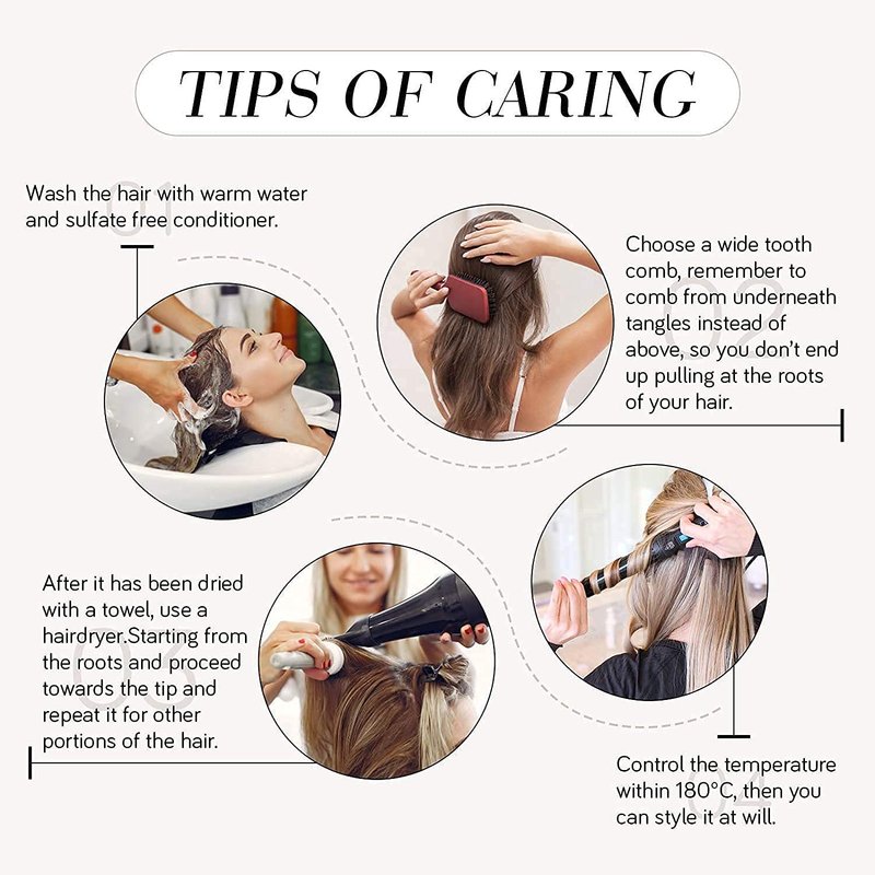 - 3.100% Real Human Hair guarantee: No added synthetic hair. The product can be styled in any way. No shedding and dryness after washing. Careful care products can last 8-12 weeks. You can refer to our product page to check it.