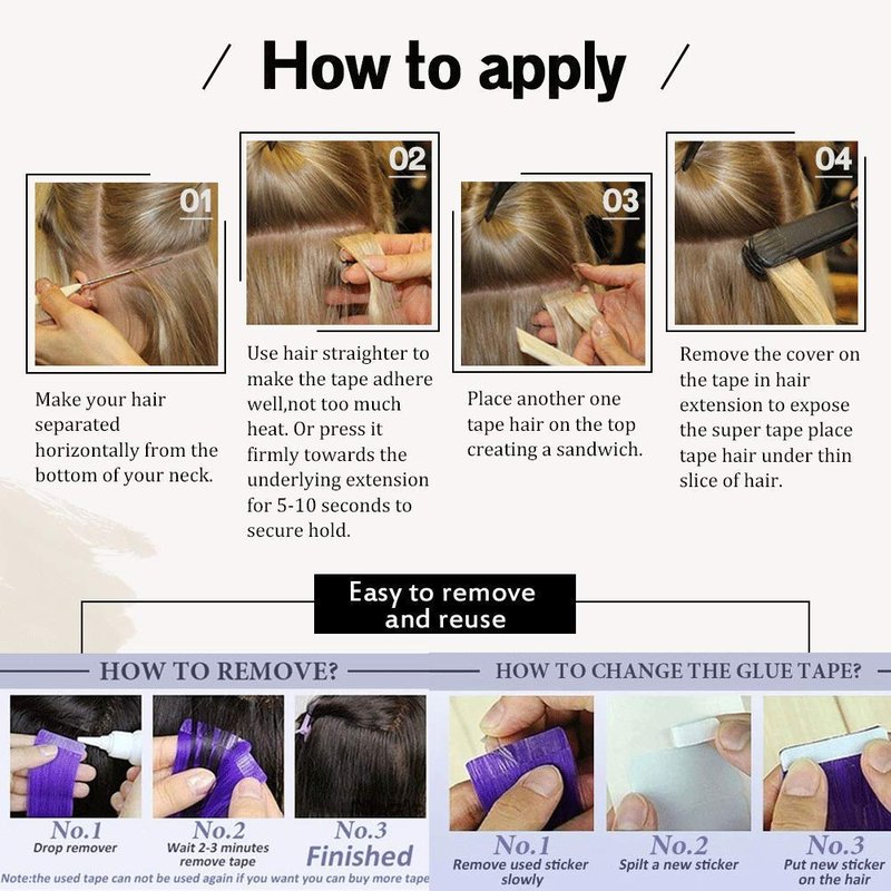 - 2.Hypoallergenic Double-Sided tape with Strong Glue: The adhesive is sticky to prevent the product from falling out .Easy to remove without damaging your hair by using professional remover.