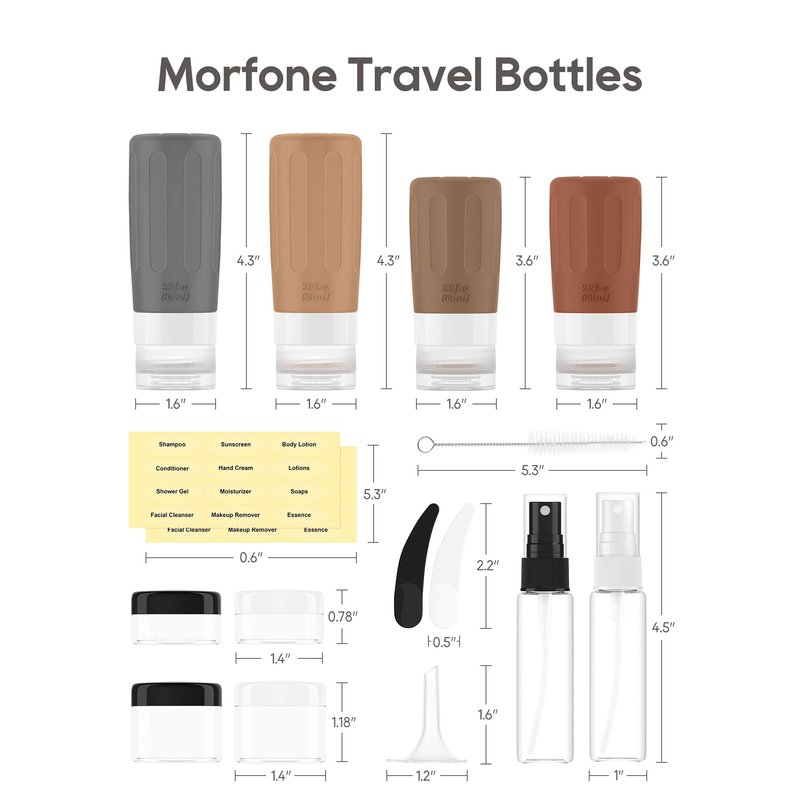 Morfone 16 Pack Silicone Travel Bottles Set for Toiletries TSA Approved Travel Containers Leakproof Squeezable Refillable Travel Accessories 2oz 3oz for Shampoo Conditioner Lotion Liquids (Brown)