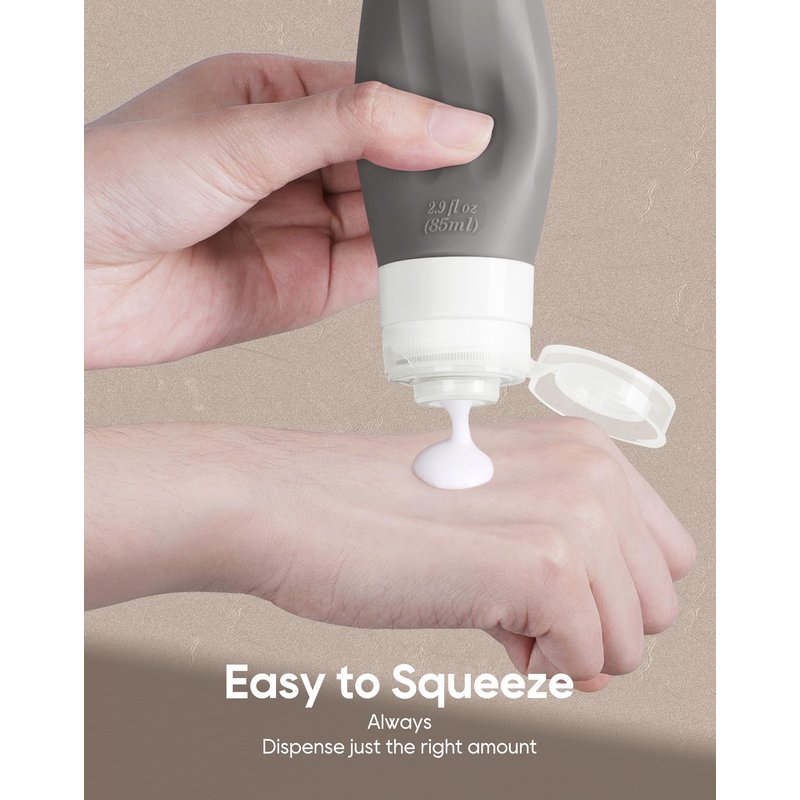 - ♤【SAFE SILICONE MATERIAL】 Made of Food Grade BPA Free Silicone, this travel set is sturdy, soft, squeezable, flexible and reusable. Safe material guarantee that you can not only use them to store shampoo, conditioner, face soap, sunscreen, creams, lotion or etc, but also safe for food, various seasonings. Soft silicone body make you squeeze out contents easily