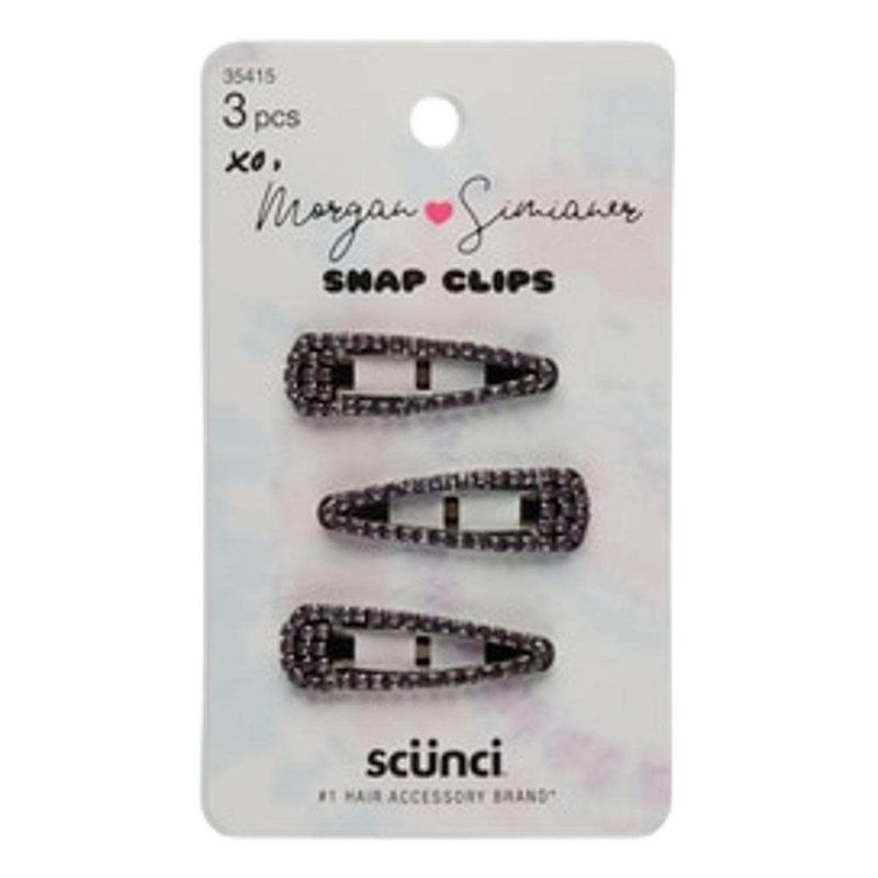 Morgan Simianer Xo Scunci Hair Clips (Small Rhinestone Snap Clips, 3 Ct), Morgan Simianer Xo Scunci - Pinzas para el cabello (pinzas pequeñas con diamantes de imitación, 3 unidades)