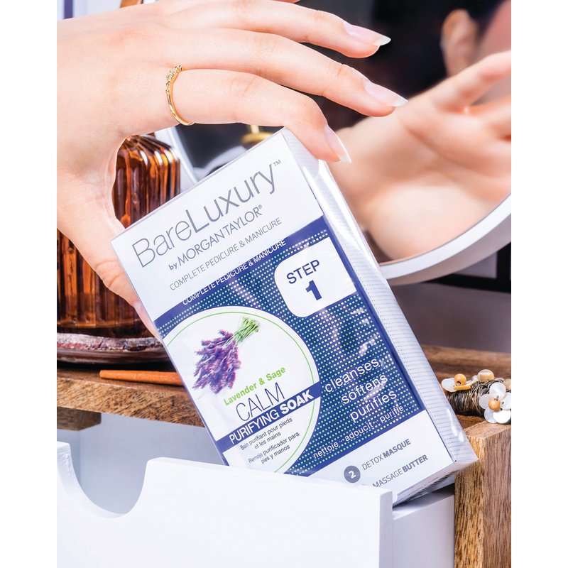 Morgan Taylor BareLuxury 4-Step Complete Pedicure & Manicure Packs (Lavender & Sage), Hand and Foot Spa Kit in 4 Packs, Pedicure and Manicure Kit, Self Care Gifts For Women