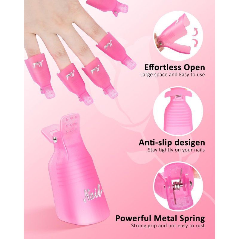 - ONE SET MEET YOU ALL NEEDS: With this set you can easily to soak, dissolve, and remove gel. The nail soak off clips are made of durable and reusable plastic. Nail cotton pads are lint-free and absorbent. All metal tools are made of stainless steel. Perfect nail remover kit for salon and home use.