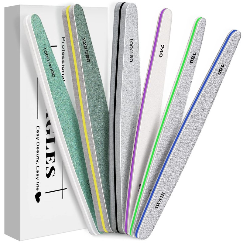 MORGLES Emery Boards Professional Grit Nail File Pack for Acrylic/Natural/Gel Nails (100/150/180/220/240/280/1000/4000 Grit)