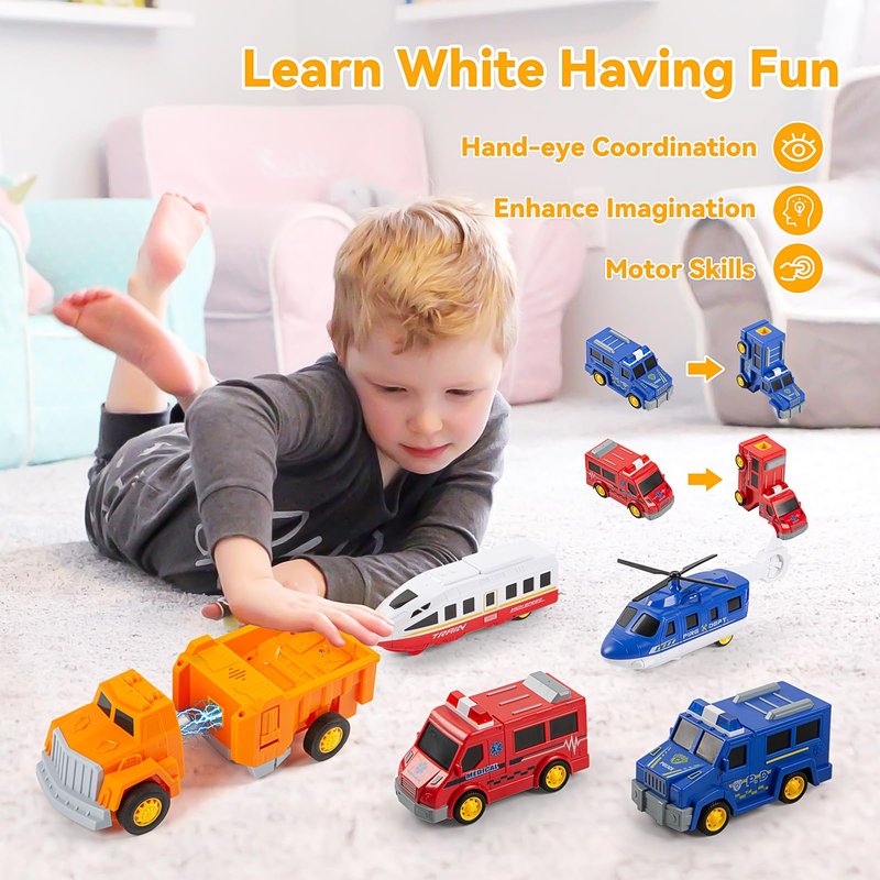 - 【Magnetic locking system】: The magnetic connectors in the car can easily connect different parts of the robot, allowing children to easily assemble and disassemble. Designed specifically for children.