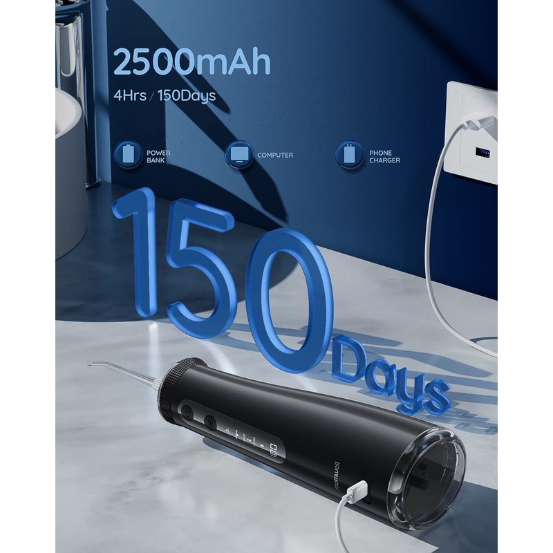 - Powerful Portable Irrigator:150 days super battery life, 1,400 ultrasonic water pulses/min for comfortable cleaning of teeth.