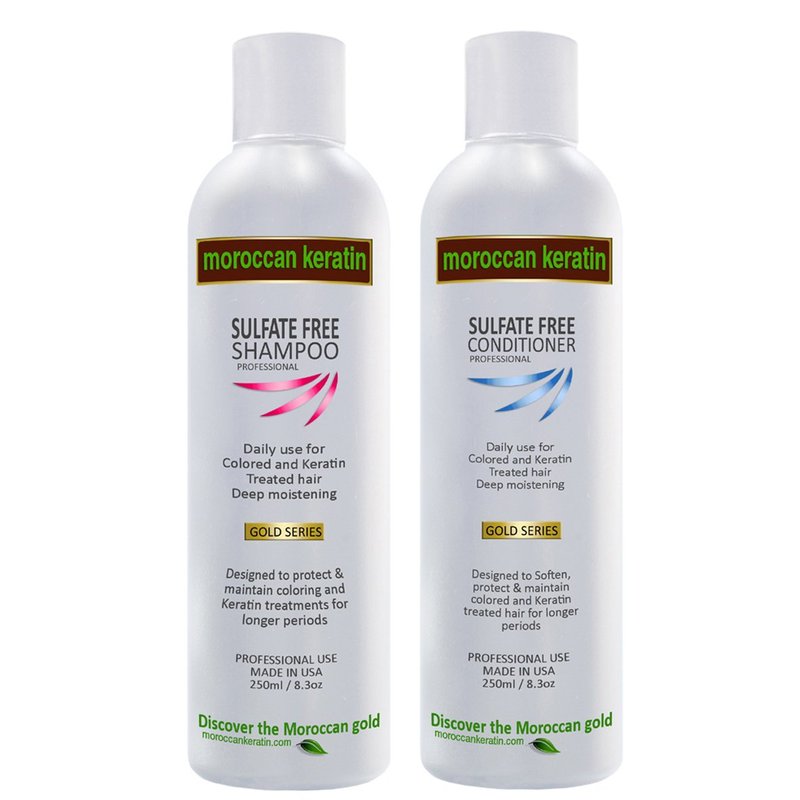 - This includes: 1x Moroccan Keratin Gold Series Sulfate-Free Moisturizing Shampoo 250ml, 1x Moroccan Keratin Gold Series Sulfate-Free Moisturizing Conditioner 250ml.