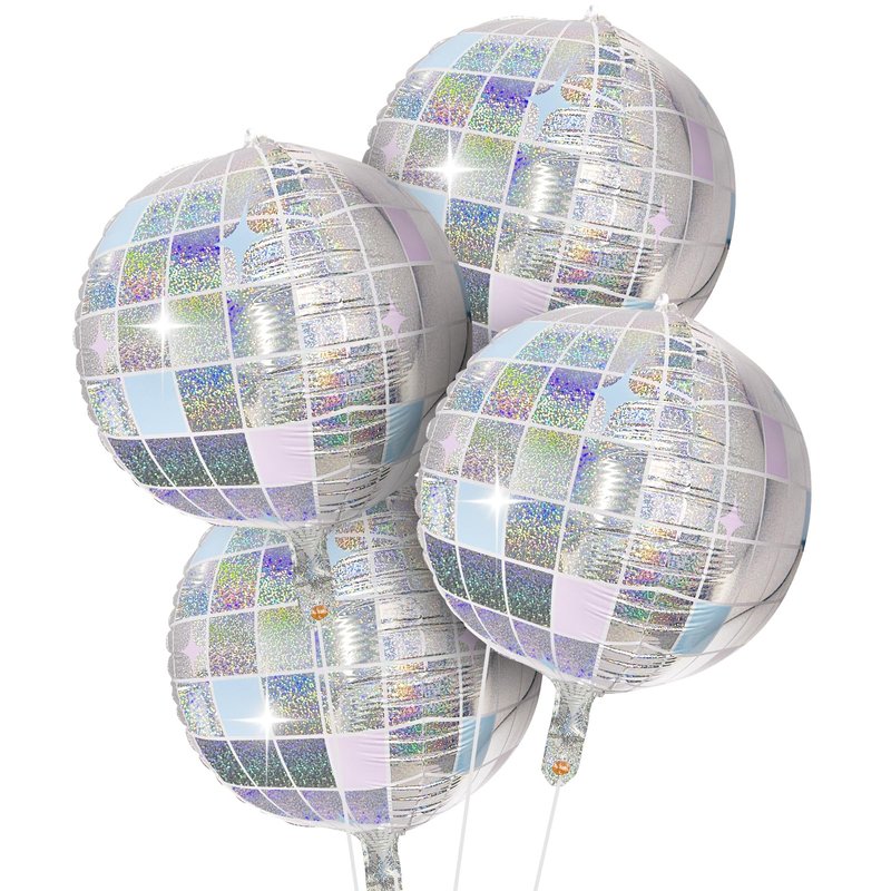 Morofme Iridescent Disco Ball Foil Balloons 4pcs Last Disco Bachelorette Balloons Decorations 22" Mirror Disco Balloons 4D Silver Disco Balloon Disco Themed Birthday 70s Dance Party Decor Supplies