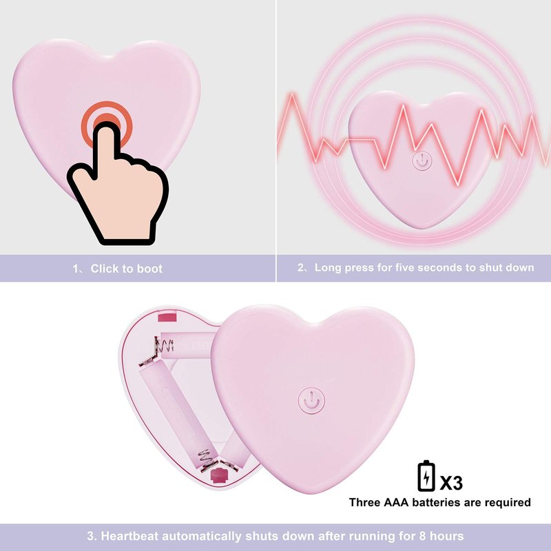 - Plush Toy + Heartbeat Simulator: The product contain a plush dog toy and a true heartbeat simulator that need 3 AAA batteries but not included. The plush dog toys is made from comfortable, skin-friendly fabrics, and it can be machine washable with the heart removed. The heartbeat will shut down automatically after running for 8 HOURS.