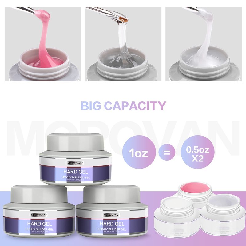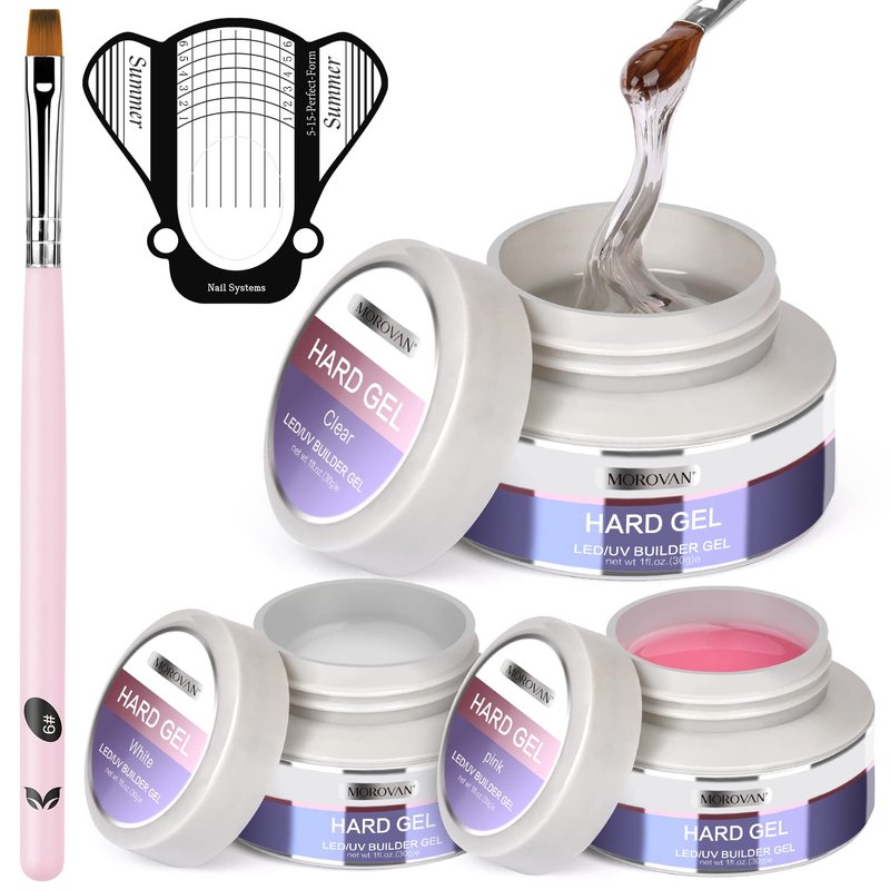 Morovan Builder Nail Gel for Nails 3 colors 1oz LED/U V Gels Clear Pink White Strengthen Nail Extension Gel Nail Art Manicure Set with Nail Forms