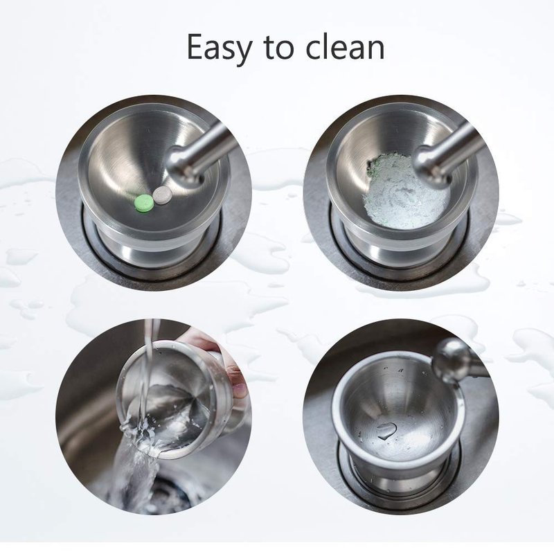 - ROCK-SOLID MORTAR AND PESTLE: Food grade indestructible 18/8 stainless steel Made, rustproof and anti-Corrosion. Pretty sturdy, durable, non-toxic, Long-lifespan, can be used for decades.