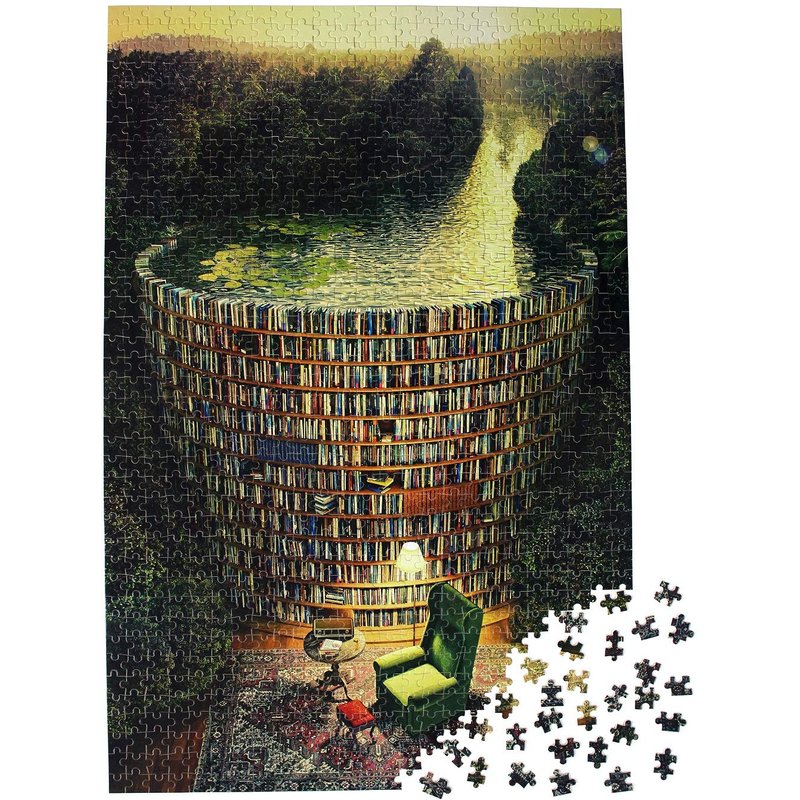 Moruska Puzzles for Adults 1000 Pieces Wooden Jigsaw Puzzle Challenge and Fun - Bookshelf Dam