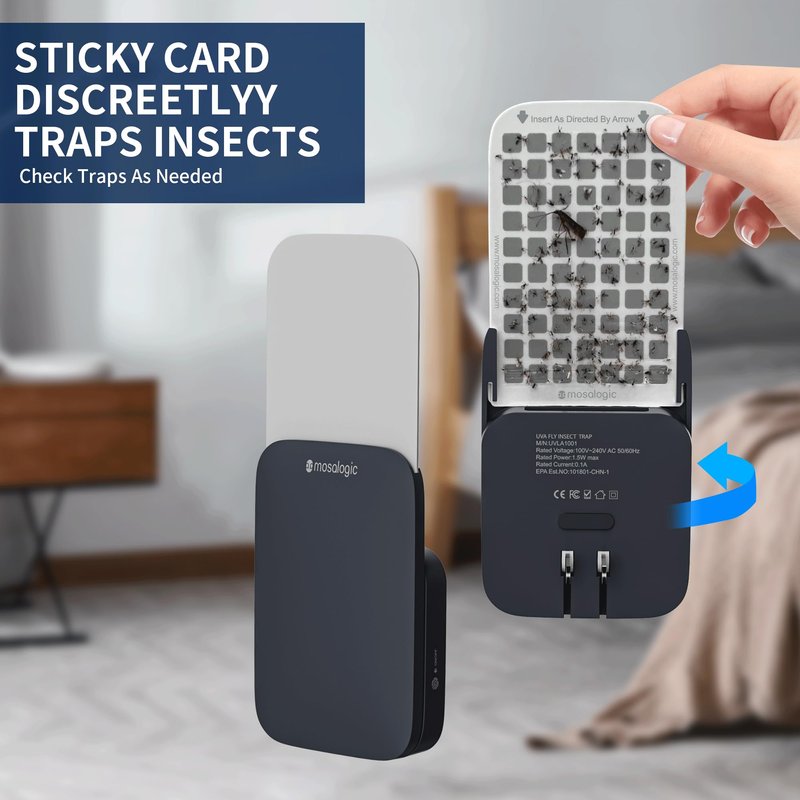 - Multifunctional Flying Insect Trap: Fly killer is a powerful tool for capturing flying insects such as mosquitoes, bugs, moths, fruit flies, gnats, and more. With its UV light technology, the trap lures insects towards it and once they reach the surrounding, they become trapped on the glue board with no chance of escape. Additionally, the trap doubles as a night light, making it a helpful sleep aid.