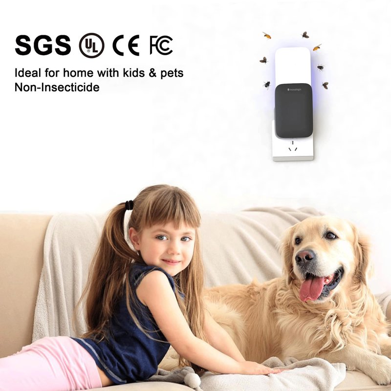 Mosalogic Fly Insect Trap Plug-in Mosquito Killer Gnat Moth Catcher Fly Tapper UV Attractant Catcher for 400 Sq Ft of Protection (Black-1pack)