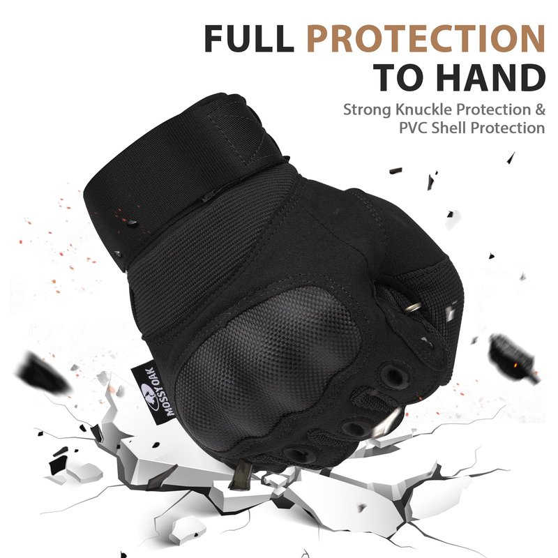 - Adequate Protection: The PVC shell at the knuckles of full-finger tactical gloves can increase the cushioning effect and resist the impact of sharp objects, effectively protecting your hands from all the bruises, cuts, and scratches in action-packed outdoor sports activities without compromising agility and tactile feel.