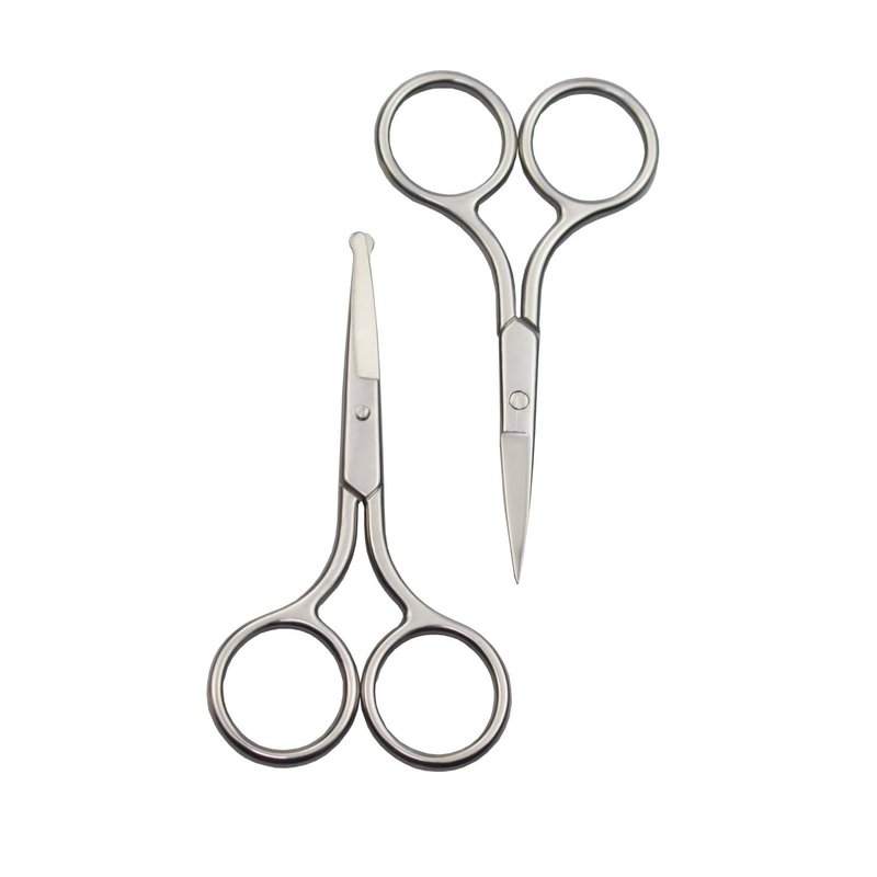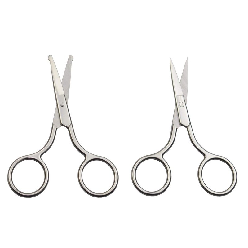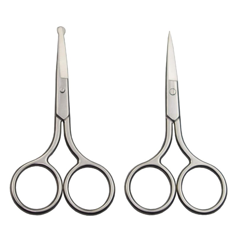 - This set hair grooming scissors contain two pairs of scissors. Safety rounded tip scissor is perfect for nasal and ear hair removal or kid’s hair trimming, which won’t accidentally poke, hurt your sensitive nostrils or skin. Sharp straight blade scissors are excellent for trimming beard, upper lip hair, mustache, eye lashes, shaping eyebrow, brows, mustache, cutting nails and hangnails.