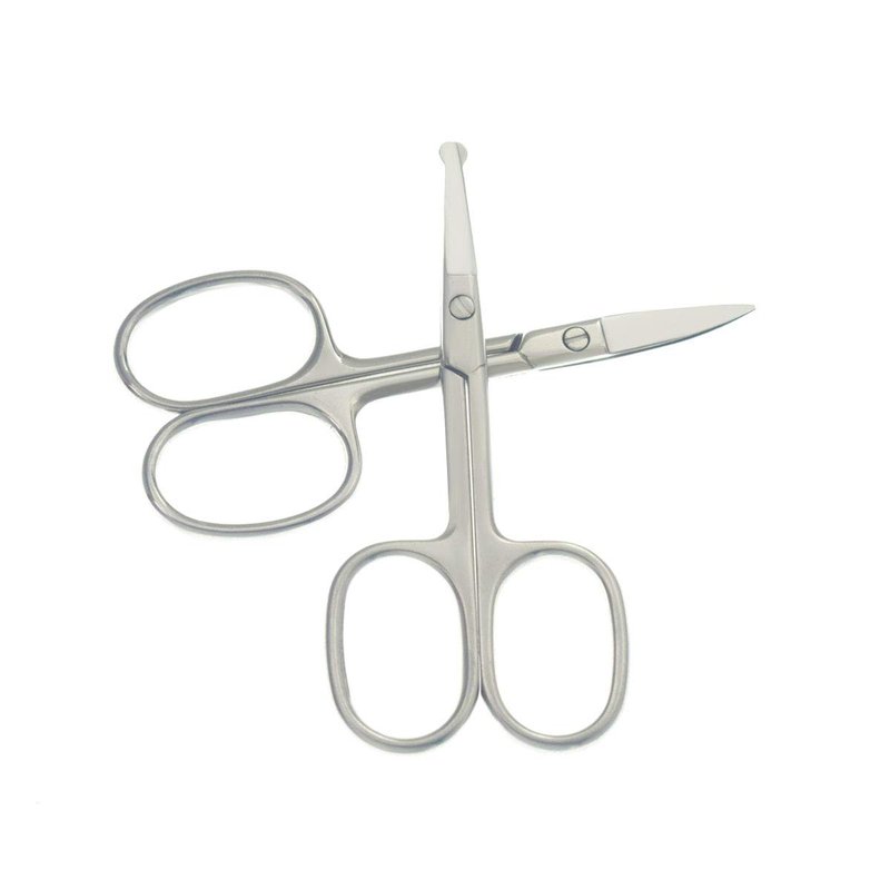 - 1. This set hair grooming scissors contain two pairs of scissors. Safety rounded tip scissor is perfect for nasal and ear hair removal or kid’s hair trimming, and women nose hair trimming, which won’t accidentally poke, hurt your sensitive nostrils or skin. Sharp curved blade scissor is excellent for trimming beard, upper lip hair, mustache, eye lashes, shaping eyebrow, brows, mustache, cutting lace wigs.