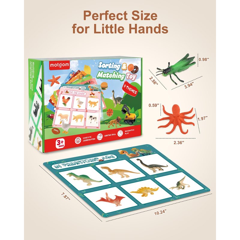 - Learning Through Fun: Our sorting toy set creatively combine activity cards with a variety of toys, it can help kids learn how to classify and sort objects by recognizing their different attributes, types, and similarities, allowing them to improve cognitive abilities, problem-solving skills and fine motor skills in a fun and playful way