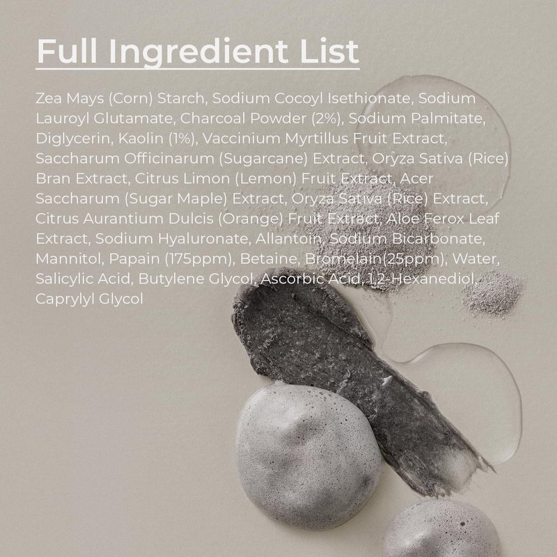 - MADE WITH: Non-GMO Corn Starch + Korean Bamboo Charcoal + Kaolin Clay + Fruit Enzymes + Hyaluronic Acid + Salicylic Acid
