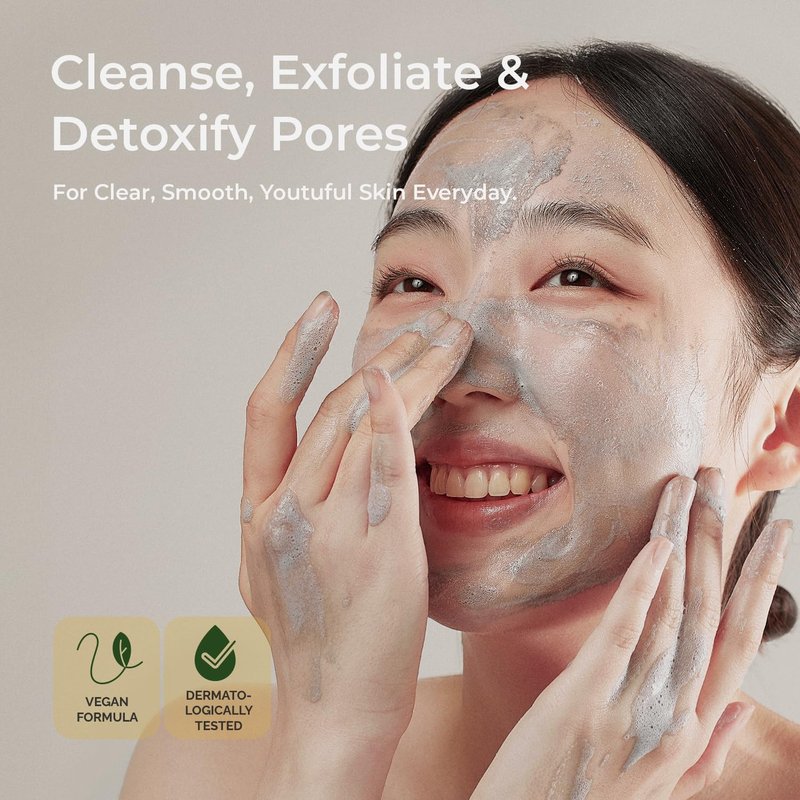Get your beauty sweep. This water-activated cleanser detoxifies and purifies the skin by washing away debris and impurities, morning and night. A Bamboo Charcoal and Kaolin Clay Powder gently exfoliates dead and dry skin cells away, and helps support the skin's first line of defense against free radicals.