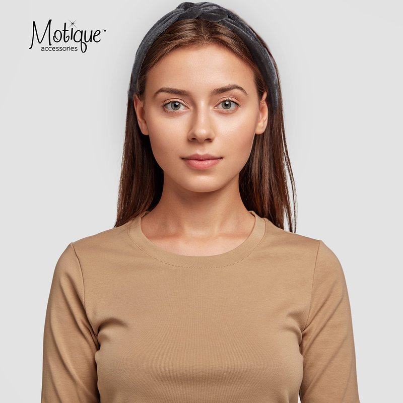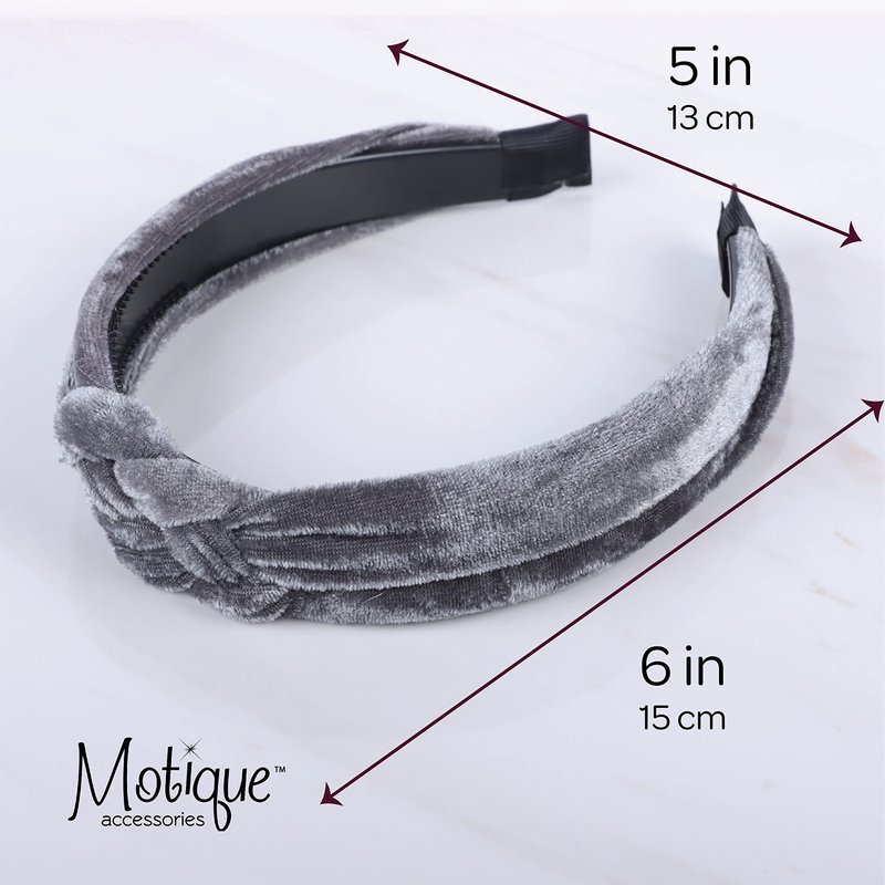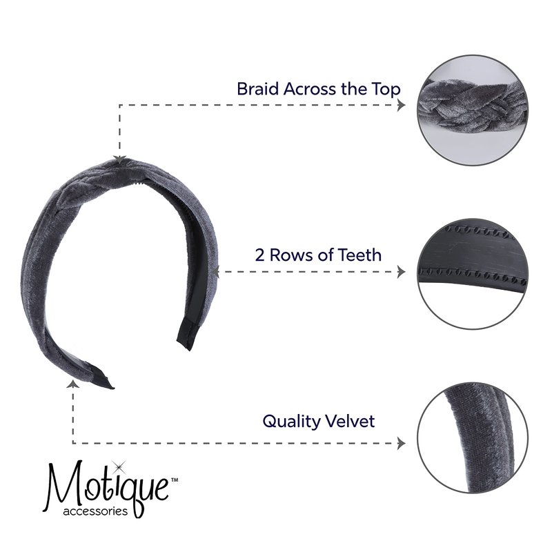Motique Accessories 1.5 Inch Velvet Braid Headband Women and Girls Hair Band (Grey)