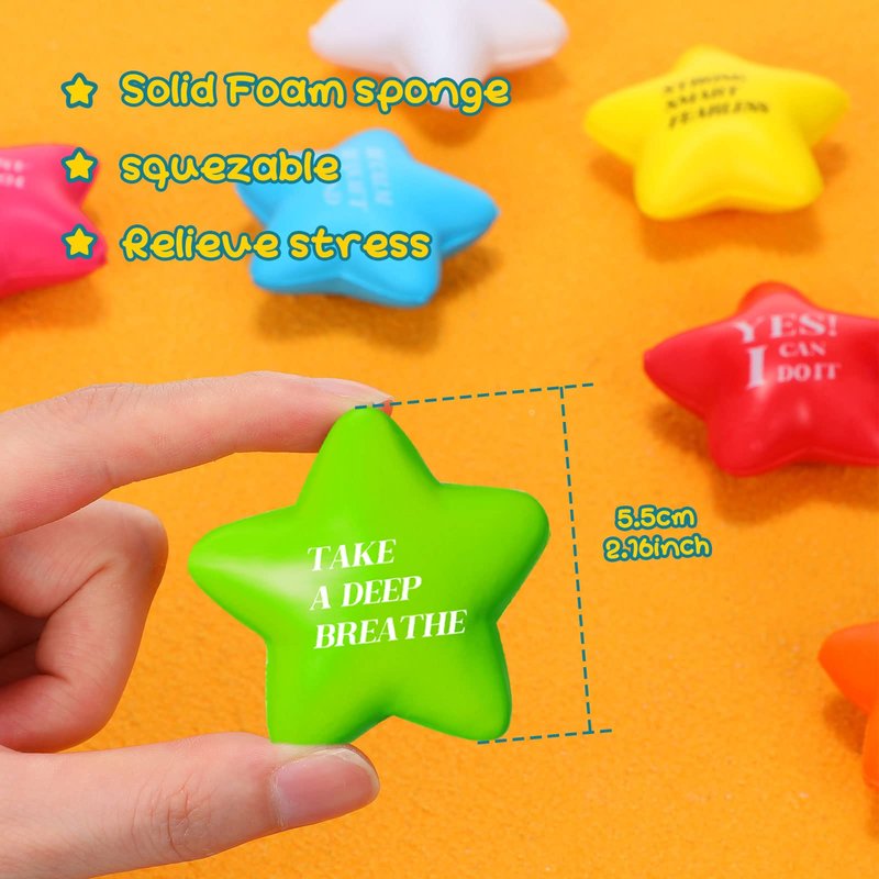 Motivational Stress Balls Quote Relief Ball Colorful Inspirational Foam Star Hand Exercise Toy Relieve Anxiety for Adults Girls Boys Party Favors(72 Pcs)