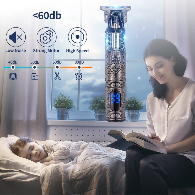 - 【High Speed and Low Noisee】:The outliner clippers has a powerful rotating motor, and you can clearly see the high-speed rotation.So you can trim your hair quickly, even if you trim the thickest hair, it will not pull any hair. Only 55 db of noise can be heard as working noise. Low noise allows you to trim your hair easily, and you don't worry about disturbing family members who are resting.