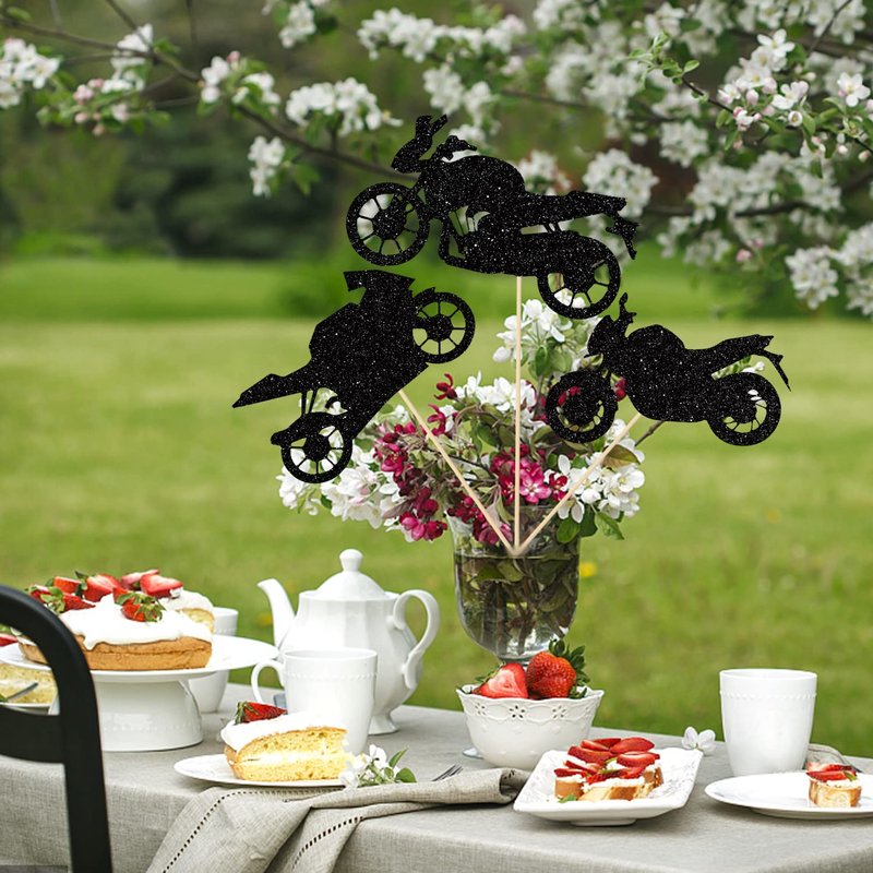 - Package include: 12 pcs Motorbike Happy Birthday Centerpiece Sticks. Need handmade DIY, simply attach glue dots to each prop and then to the stick.