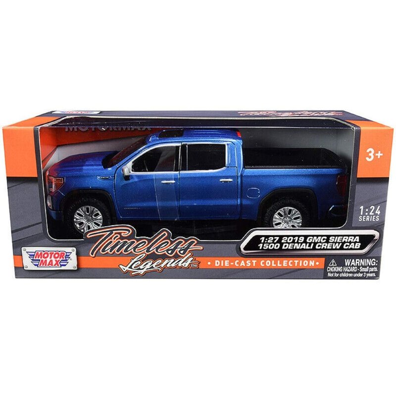 Motormax 2019 GMC Sierra 1500 Denali Crew Cab Pickup Truck Metallic Blue 1/24-1/27 Diecast Model Car 79362, Toys for Kids and Adults