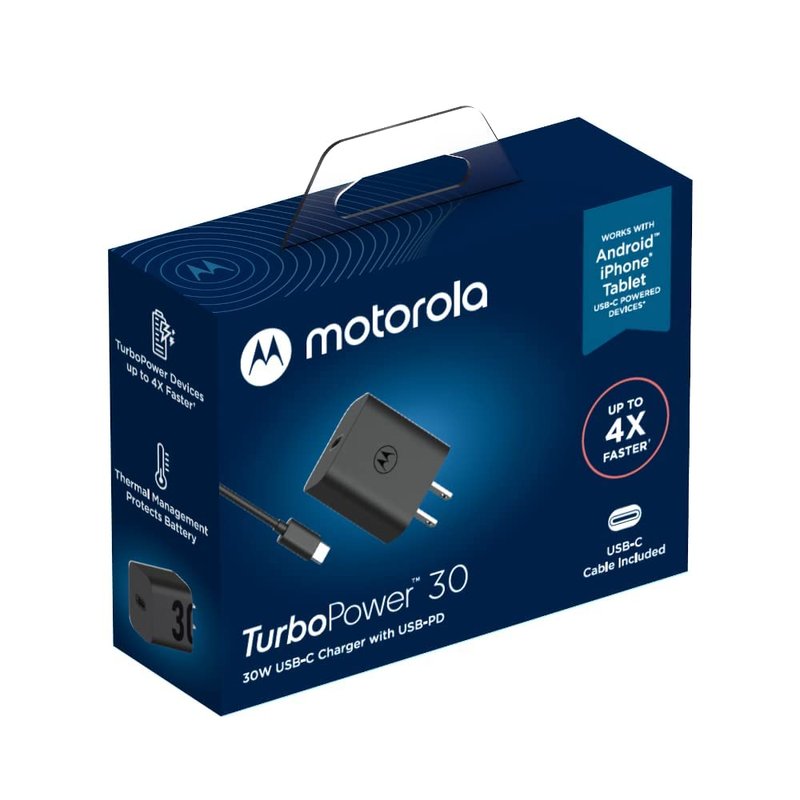 - Motorola Original- Motorola TurboPower 30 (MC-301) USB-C charger with 1m (3.3ft) USB-C to USB-C cable