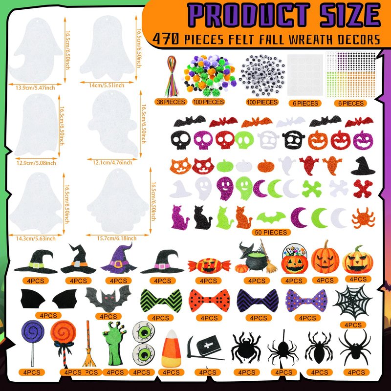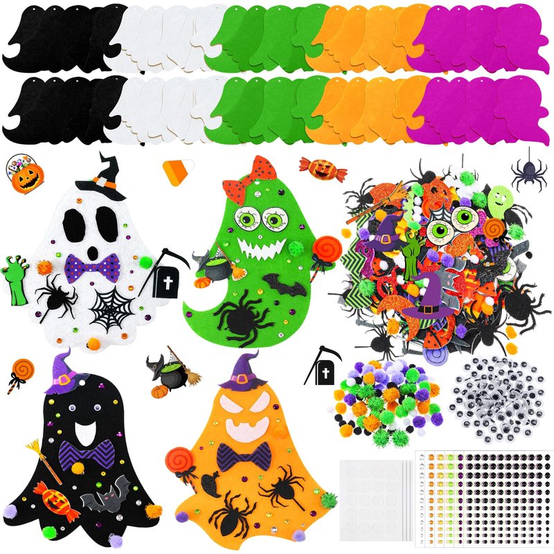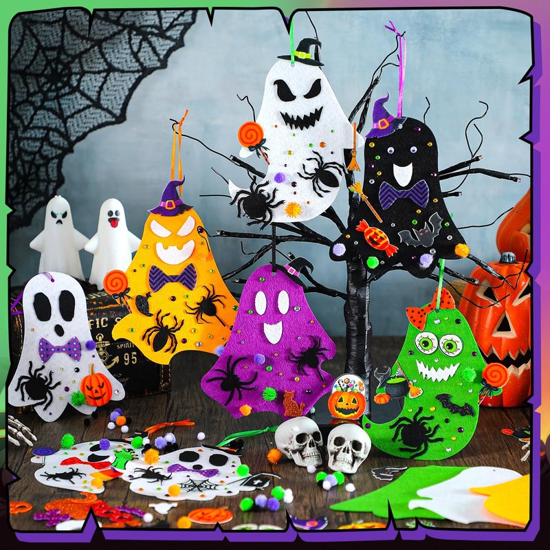 - Adequate quantity: You will receive 36 ghost shaped felt bases in this package, with 36 Halloween hanging ribbons, 142 Halloween adhesive stickers, 10 dotted stickers, 50 Halloween foam stickers, 100 Halloween fur balls, 100 eye stickers, 6 Halloween diamond stickers