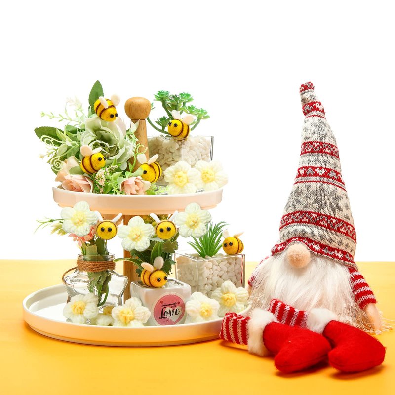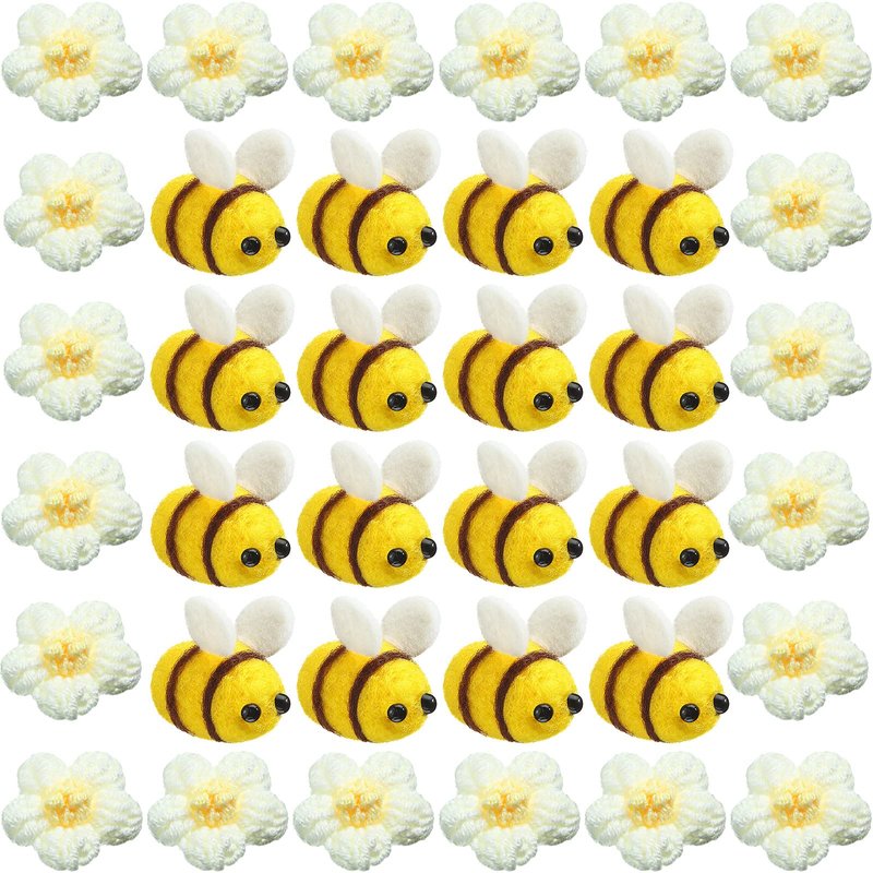 Moukeren Felt Bees for Crafts and Crocheted Spring Flowers Set, Wool Bee Decorations Plush Knitted Flowers for DIY Craft Decoration Party Favors (36 Pcs)