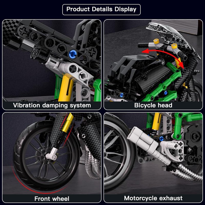 - Classic Design: This motorcycle toy blocks set is designed in the style of a real Kawasaki Ninja H2R motorcycle, with realistic body color matching