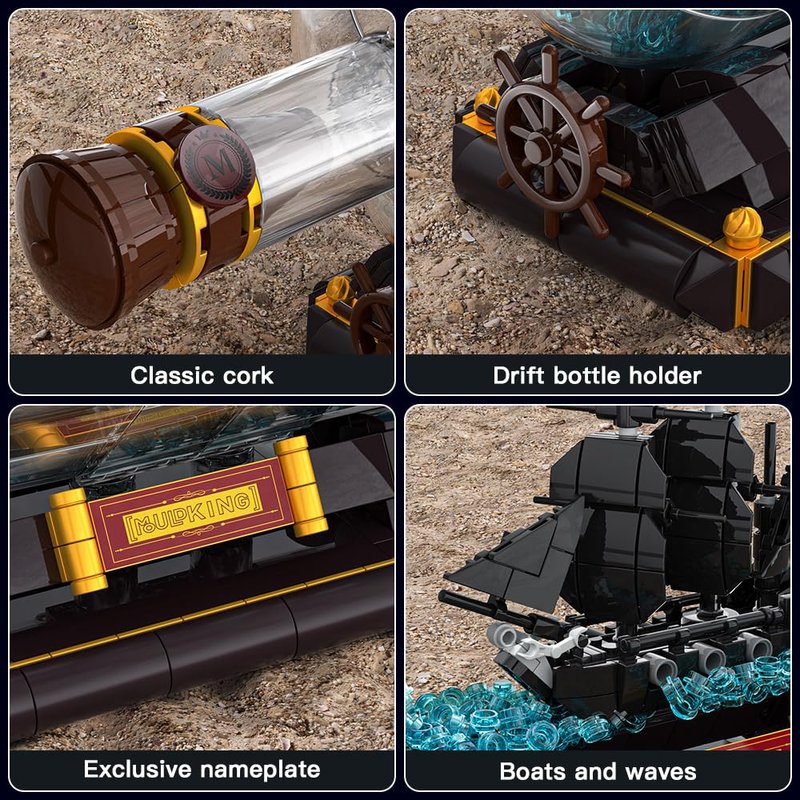 - Questions and Helps: Mould King provide after and before service for each pirate black pearl ship in a bottle, you can have your rights through your order or the store name.