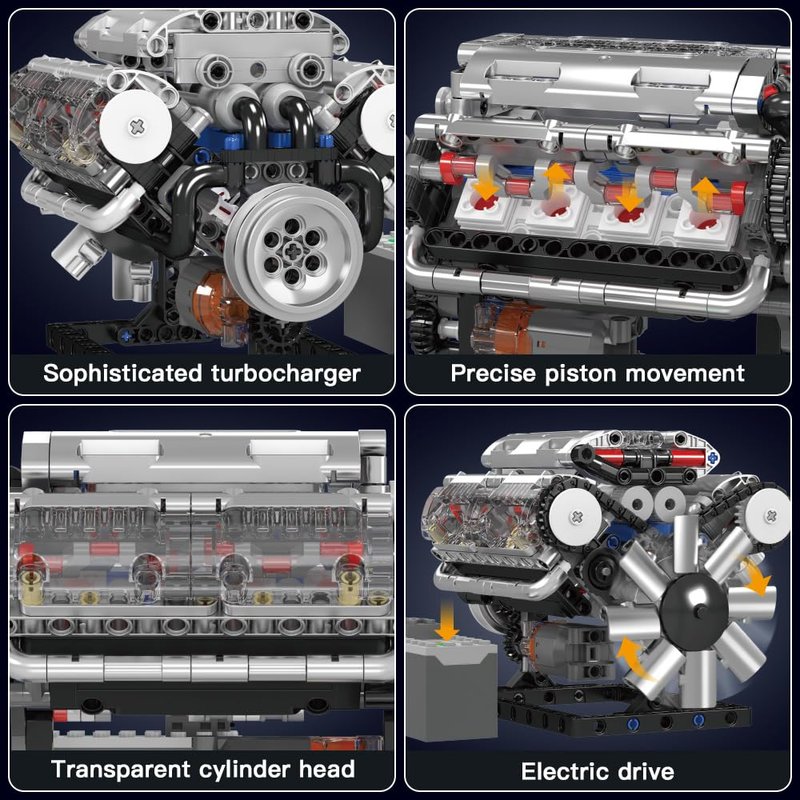 - 【Visible V8 Engine Model kit】 This V8 engine model kits is specifically designed to be a v8 engine model kit that works. This V8 engine building kit also is a visible v8 egine model that engine building sets players can see how it works as possible as well. Players can know how the V8 motor provides powers to cars trough see how the building bricks works.