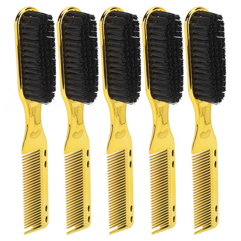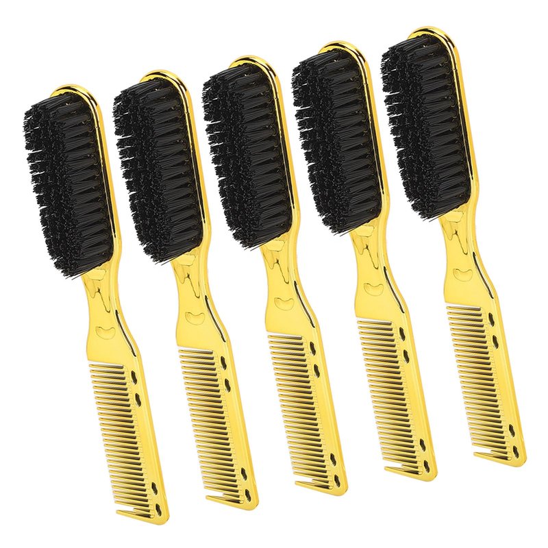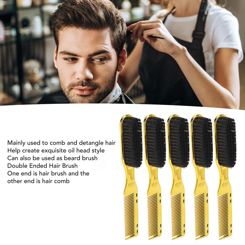 MOUMOUTEN 5Pcs Double Ended Hair Brush, Comb for Men Gold ABS Nylon Styling Tool Detangle Beard Grooming Brush Compact Lightweight Home Travel Salon Sided Detangling