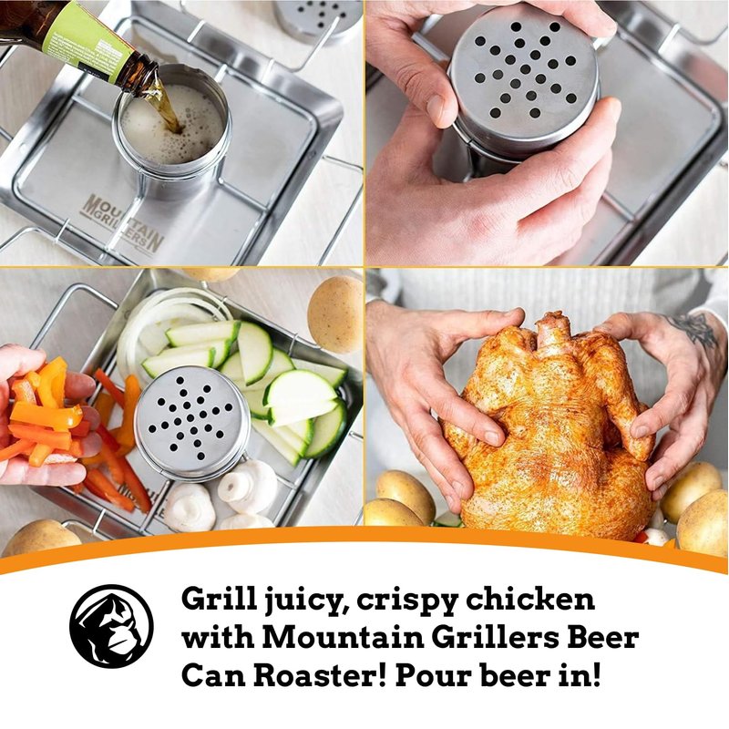 MOUNTAIN GRILLERS Beer Can Chicken Roaster Stand - Stainless Steel Holder - Barbecue Rack for The Grill, Oven or Smoker - Dishwasher Safe - Includes 4 Vegetable Spikes