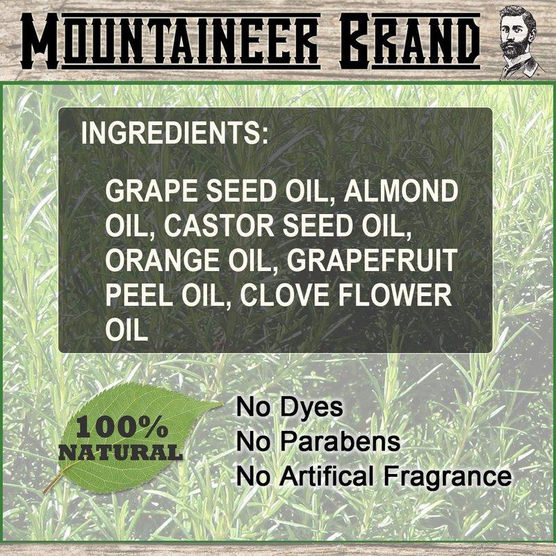 Mountaineer Brand Beard Oil is simply made from all natural oils and essential oils. Apply to your beard to keep your skin under your beard healthy, hydrated, soft, and itch free! Beard oil is a must for all phases of beard growth from stubble to full beard. Feel like a true mountaineer with a light warm scent of cloves and hints of orange and grapefruit.
