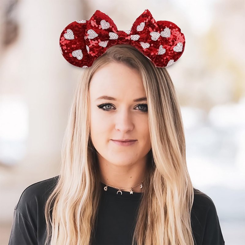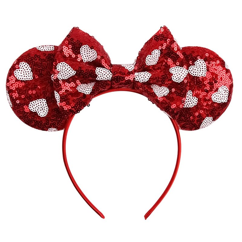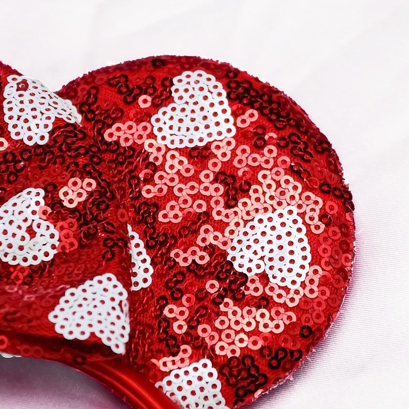 Mouse Ears Headbands Glitter Bow Valentines Day Headband Red Sequin Hair Band with Heart Patterns, Mouse Ears Hair Hoop Party Hair Accessories for Girls Women New Year Wedding Birthday Gift 1PCS