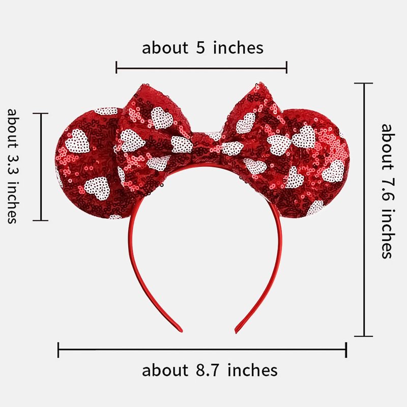 - ❣️[ Mouse Ears Unique Design ] The valentines day headband is equipped with mouse ears and a red bow, featuring sparkle sequins and heart patterns, it looks cute and special, will make you stand out at the parties.