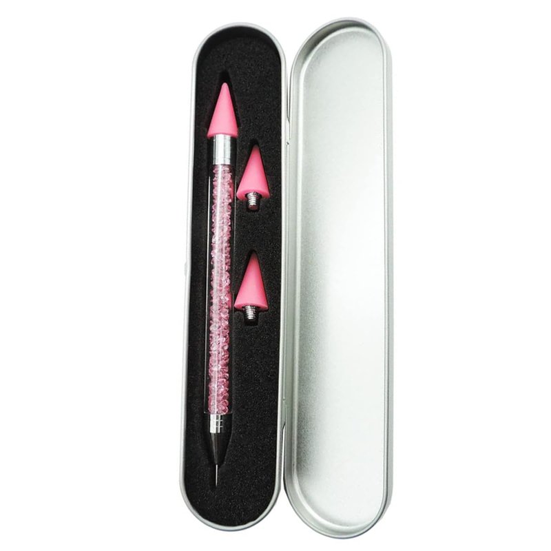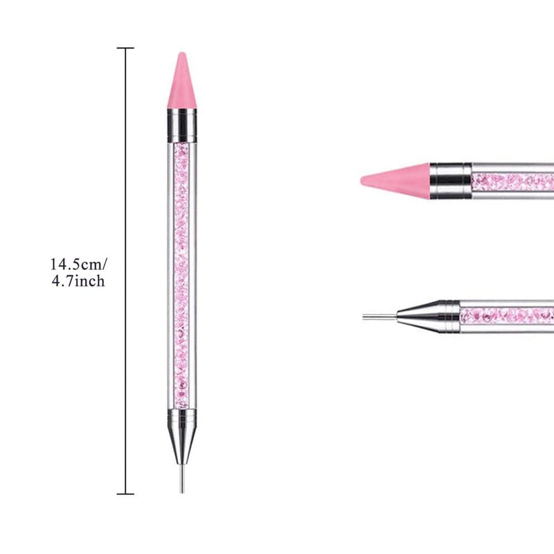 - Perfect Design: Acrylic handle of the rhinestone picker dotting pen is fulled with rhinestone. It is designed with 2 different heads, the wax tip is for picking rhinestones, and the stainless steel tip presses them to stay on the nail surface.