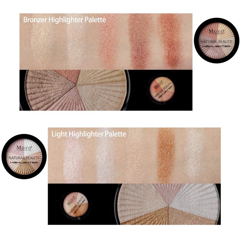 - 【5 In 1 Multiple Use Palette】Shimmer glow bronzing powder in 5-in-1 highlighter palette is mixed and use to fit all skin.Five different shades that can be used several different ways - highlighter, blush or eyeshadow.