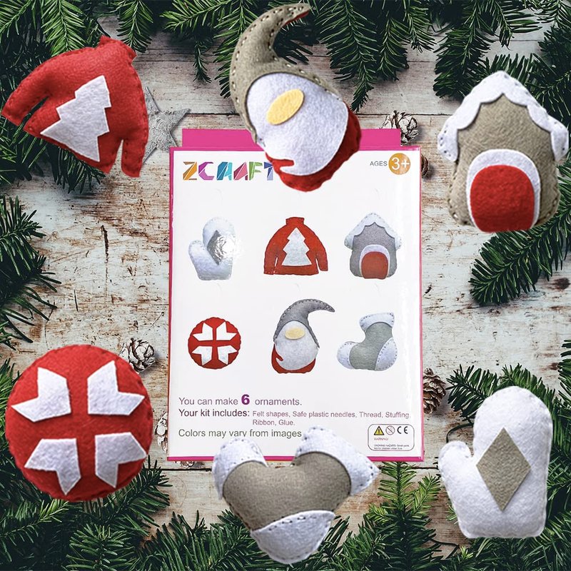 - Each christmas ornaments sewing kit includes: 6 pre-cut sewing projects, enough colors of embroidery thread, 6 sewing plastic safe needles, non-toxic fabric glue, stuffing, easy-to-follow instructions and a box package.