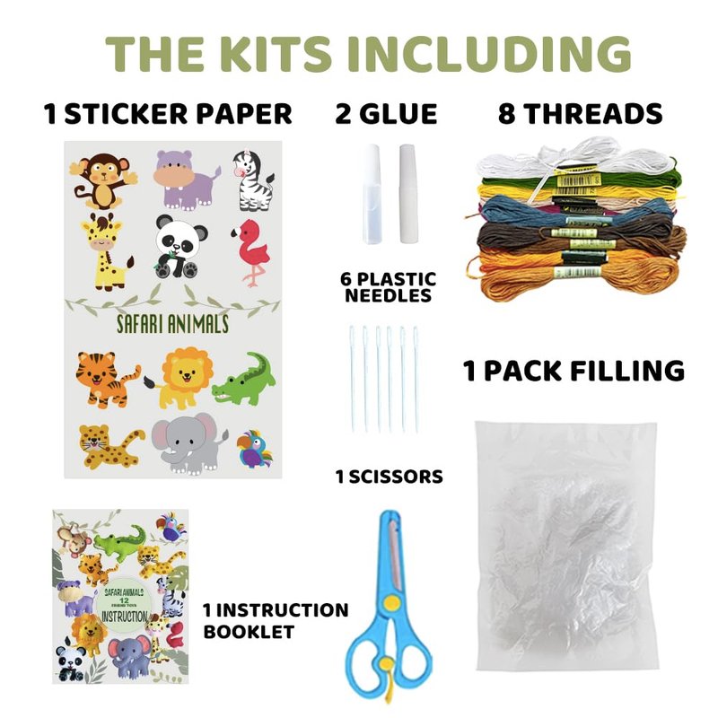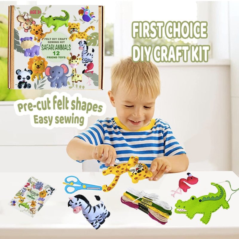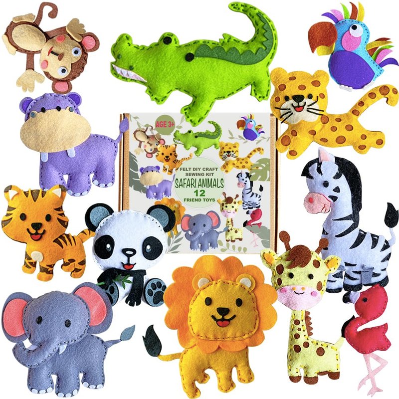Sewing Kit for Kids, Fun and Educational safri Animal Craft Set for Boys and Girls Age 7-12, Sew Your Own Felt Animals Craft Kit for Beginners, 12 toys Set