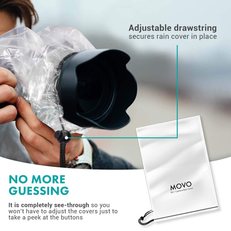 Movo (5 Pack) RC1 Clear Rain Cover for DSLR Camera and Lens up to 18" Long