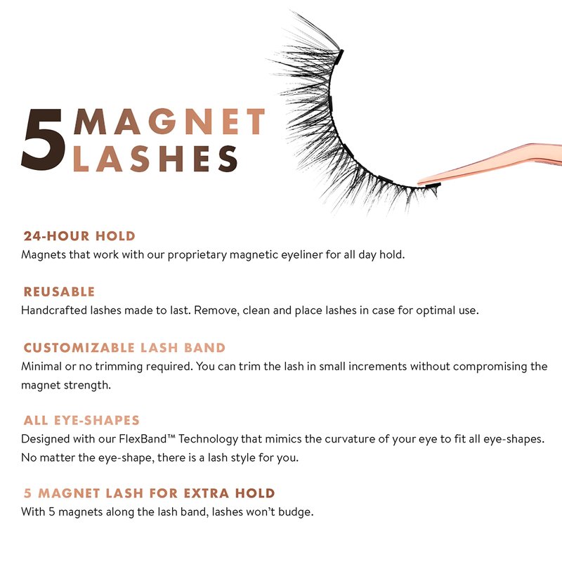 - SECURE HOLD – The magnetic strength of the 5 magnet lash band allows you to comfortably lock your Sassy lashes to our magnetic eyeliner for a secure, long-lasting hold for all-day use.