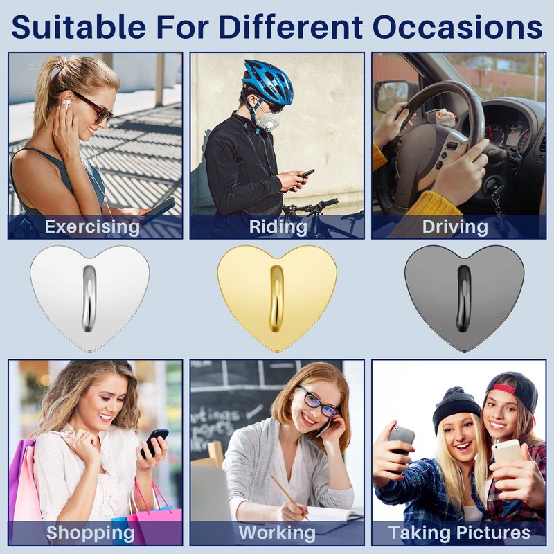 Moxweyeni 6 Pcs Cell Phone Ring Holder Stand Phone Ring Holder Adhesive Metal Phone Finger Grip Universal Ring Holder for Cell Phone Tablet, Sticky Phone Charms Accessories (Heart Shaped)