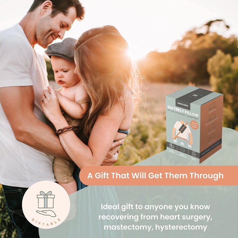 That trip home, and every trip after will be easier on your body when using this post surgery seat belt cushion.