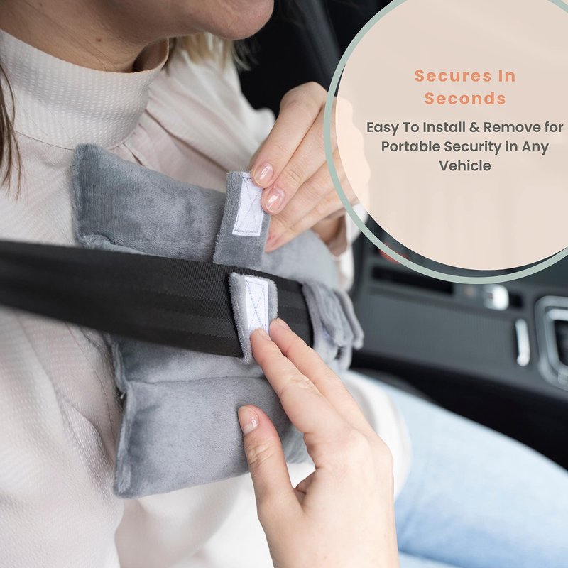 Three anchoring Velcro loops allow this seat belt pillow for adults to attach to the shoulder or lap belt providing targeted protection for your sensitive areas.