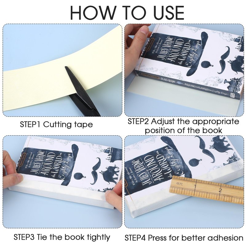 - Easy to Use:This book binding tape is very easy to use. You just need to take the appropriate length of tape according to the size of the book and stick it on the desired area.